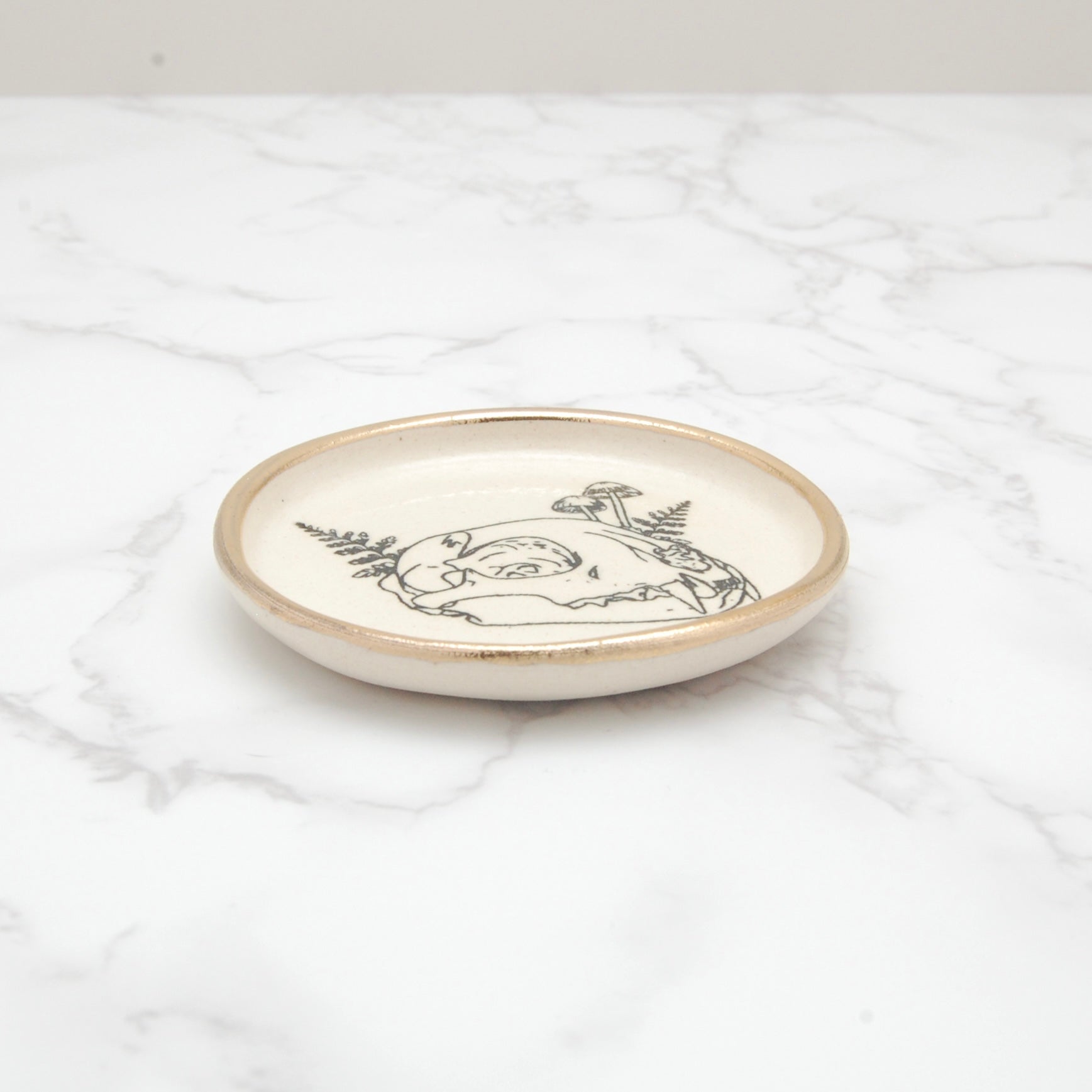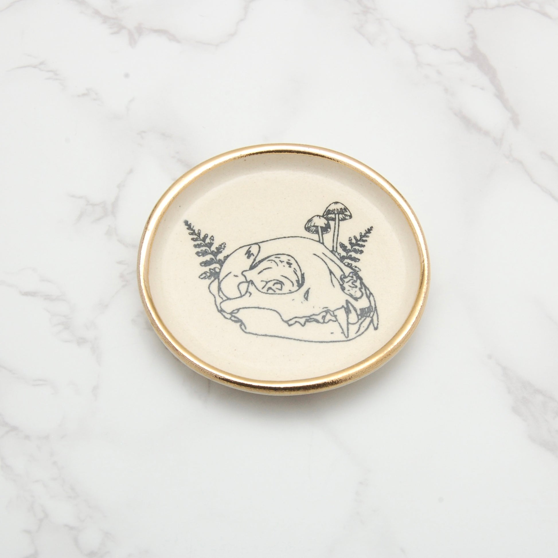 Cat Skull with Ferns: Tiny Decor Dish (3”)